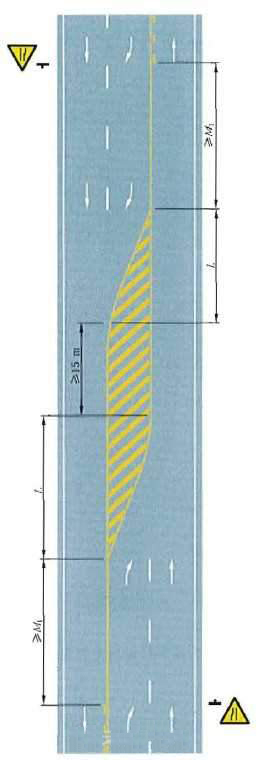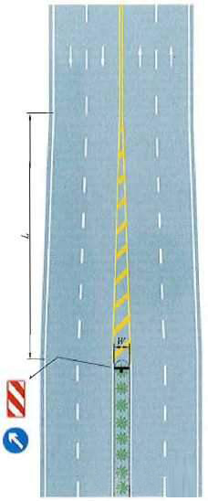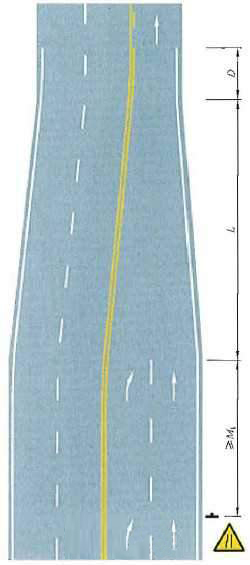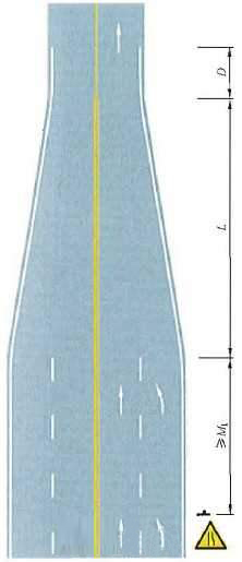 四车行道变为双车行道渐变段标线设置示例