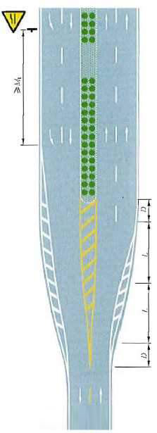 四车行道变为三车行道渐变段标线设置示例