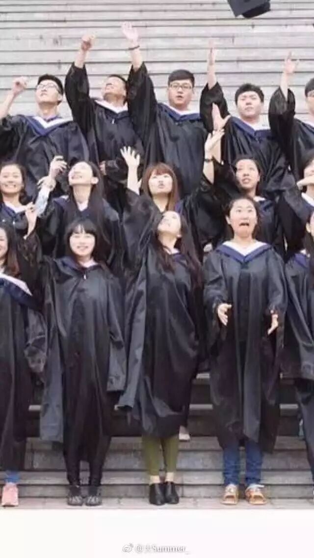 ►哈哈哈哈哈大学毕业照!大家都在扔帽子!也不知道我室友究竟看见啥了!!!哈哈哈哈哈这辈子全班都记住她了哈哈哈哈哈哈