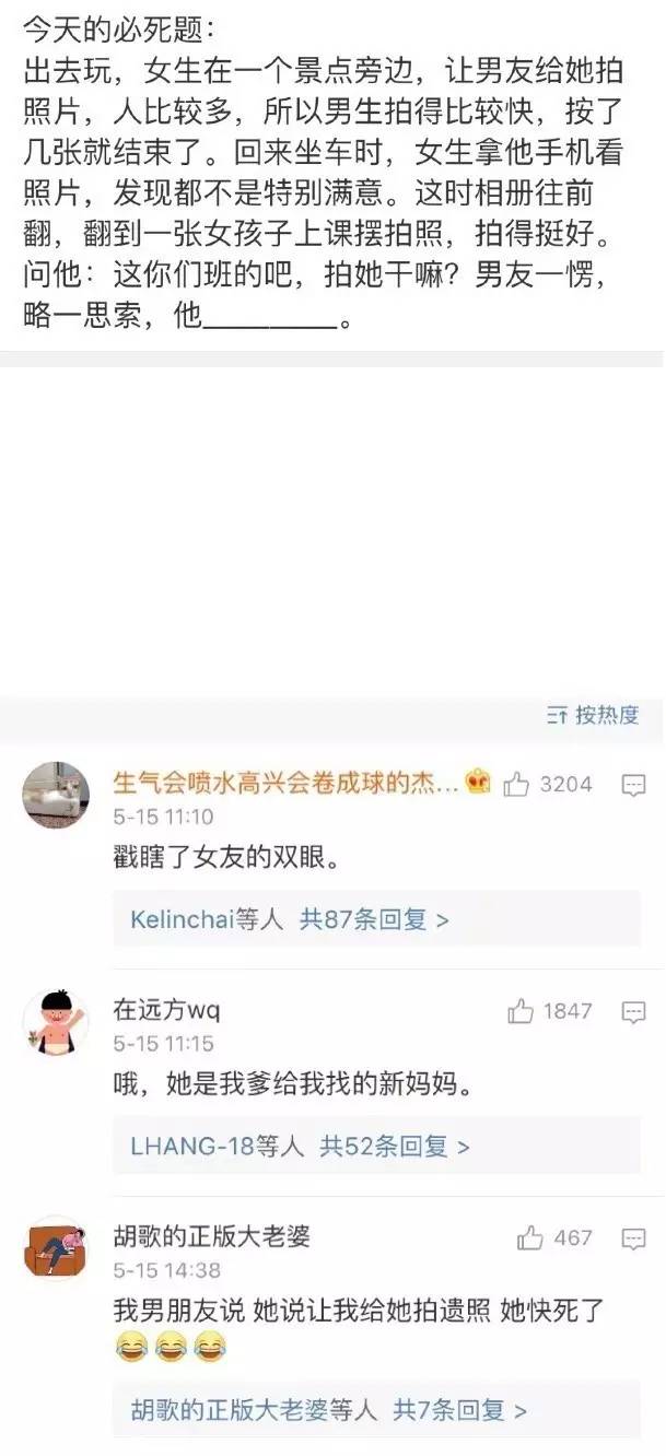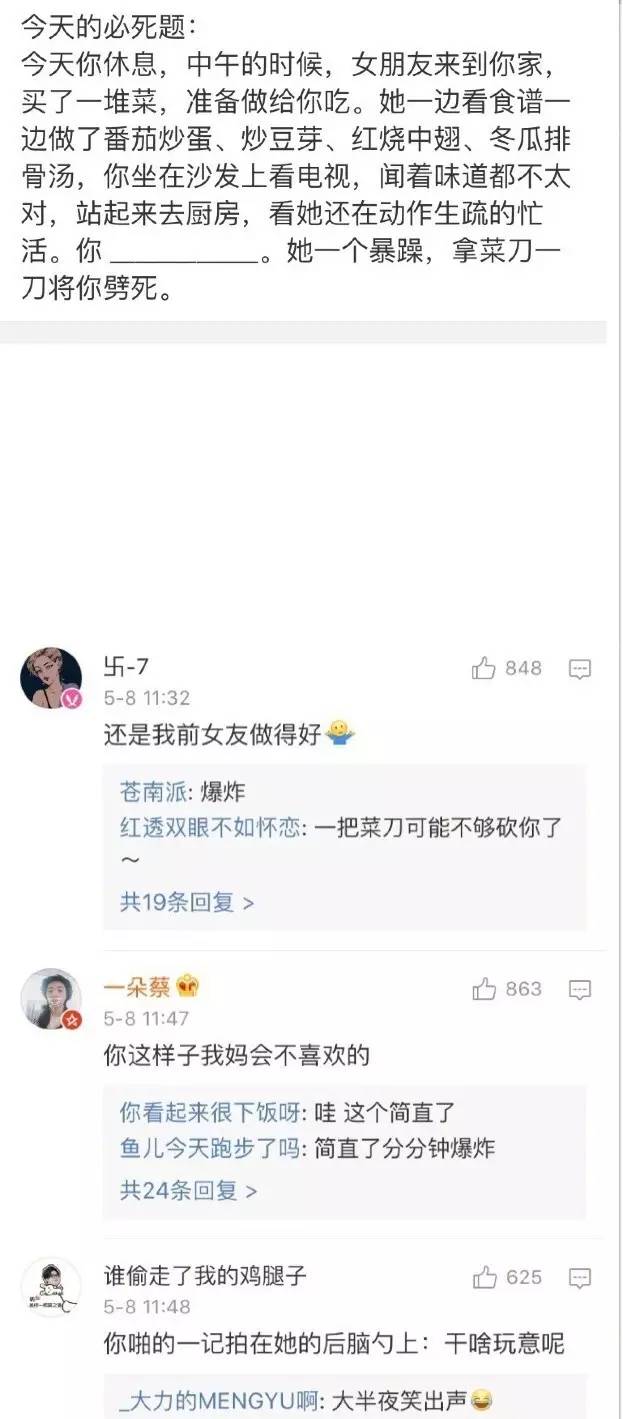 分享一组可怕的送命题,简直丧心病狂!哈哈哈哈来感受一下!