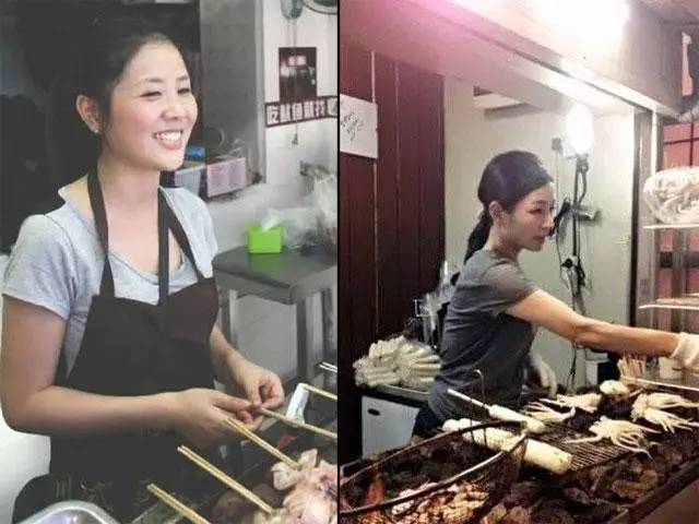 这条街是小吃街,摆的都是各种美食摊。唯有这摊修理自行车显得格格不入。