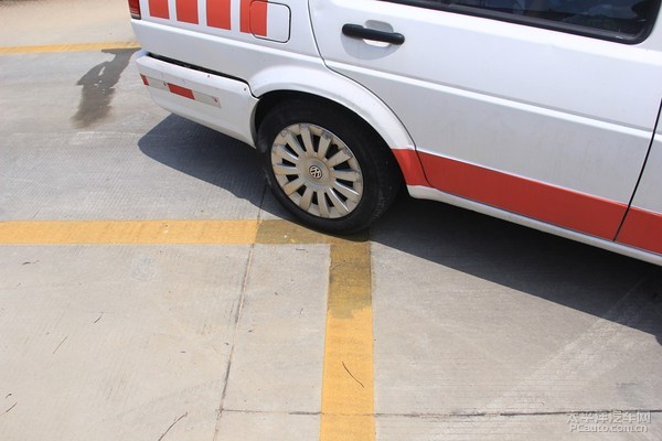 倒车入库时过早打方向,看到车身将要压到库角又不作出调整,右后轮将压到右侧库角线。