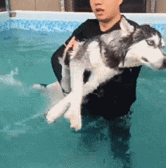 也许是被嘲笑了太多次,二哈的自尊心爆发了。开始发愤图强学游泳,过程很艰辛,结果很感人......