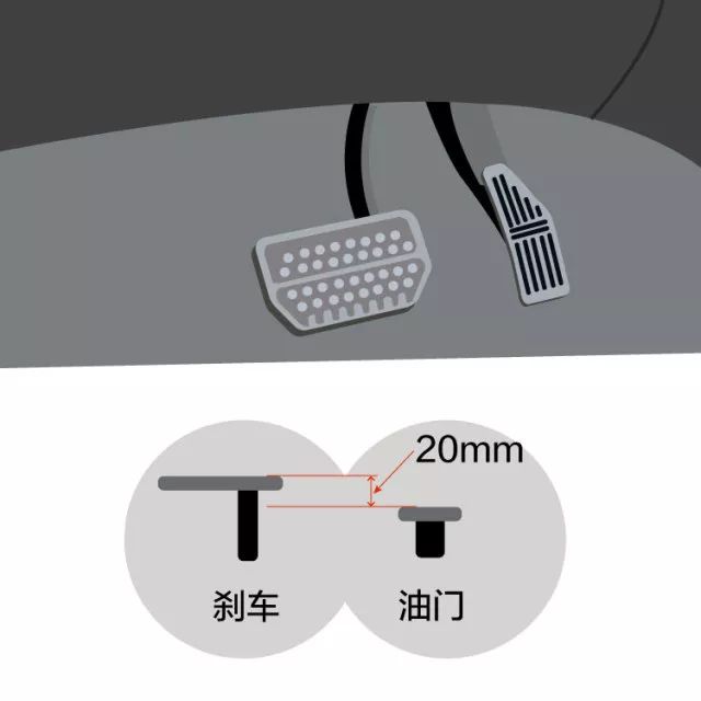 无论是手动档车还是自动档车,刹车踏板的位置一般都高于油门踏板。原理很简单,就是为了增加两者的辨识度,避免把刹车当油门踩发生危险。所以刹车踏板会比油门高出20mm左右让车主稍感不适,来提醒他们防止误踩油门。