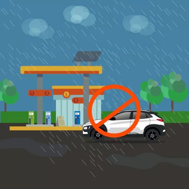 你们没看错,雷雨天最好不要加油。雷雨天多雷电,空气经过闪电的雷击,会弥漫大量的带电粒子在空气中,如果在打雷时给车辆加油的话,油枪容易将杂、散电流引入油箱,引发火灾。易燃的油蒸汽容易弥散到周围的空气中,万一被雷击中,车辆和油罐都会爆炸。